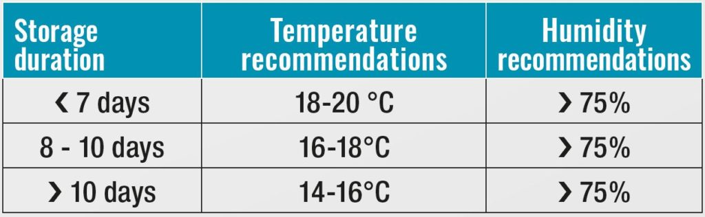 The temperature during storage needs to be lower than “physiological zero”, meaning 25-26°C, and needs to be adjusted according to the days of storage foreseen.